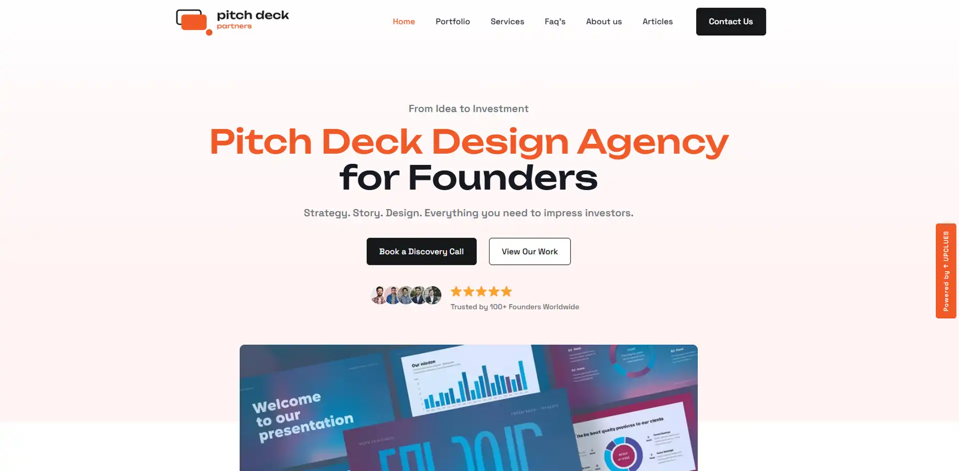 Pitch Deck Partners is a specialized agency hyper-focused on helping founders secure funding. They engineer investment-winning narratives and custom presentations that speak directly to key investors. Offering investor pitch decks, go-to-market strategies, and B2B sales decks, they deliver premium design quality with rapid turnaround times for you.