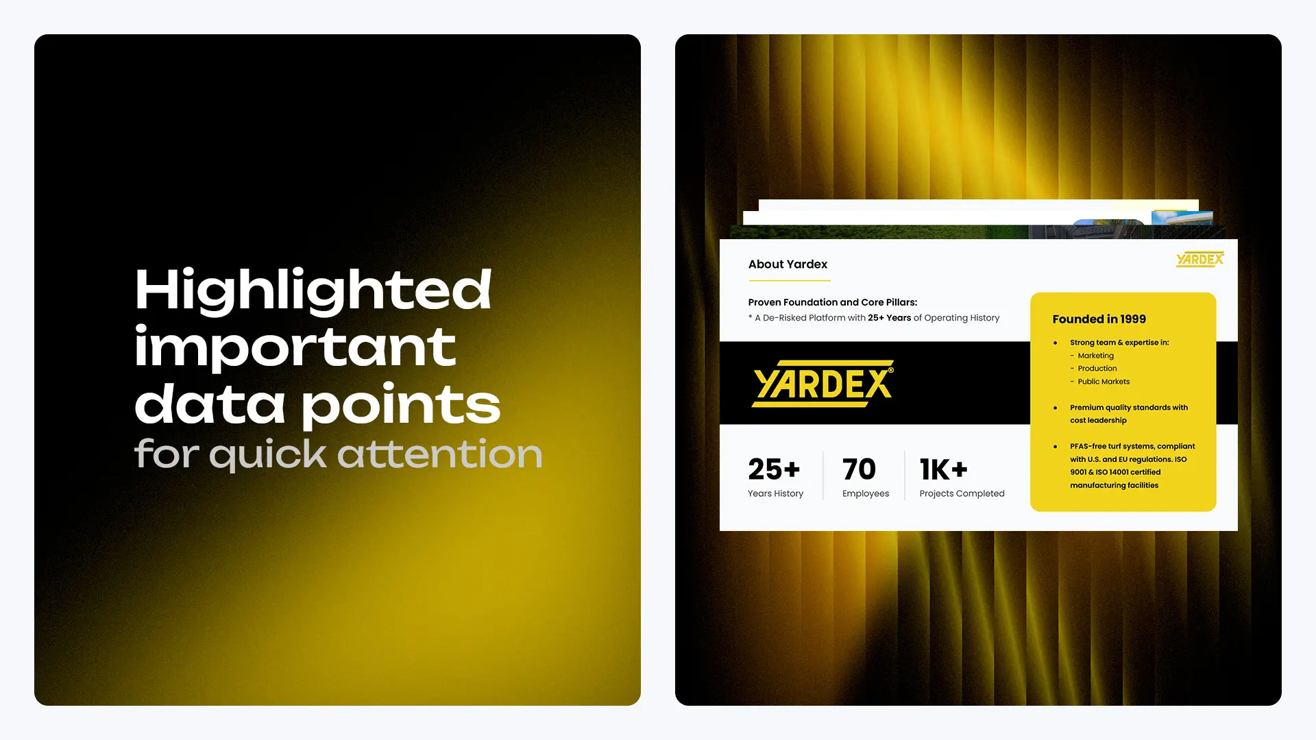 Yardex is positioned to build a leading platform in the artificial turf industry through strategic acquisitions of EBITDA-positive installers and distributors.