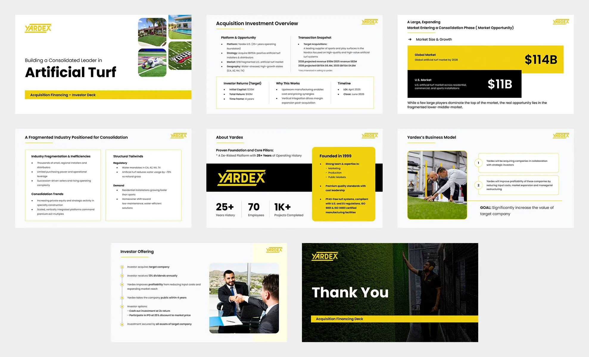 Designing an Acquisition Investor Deck for an Artificial Turf Platform