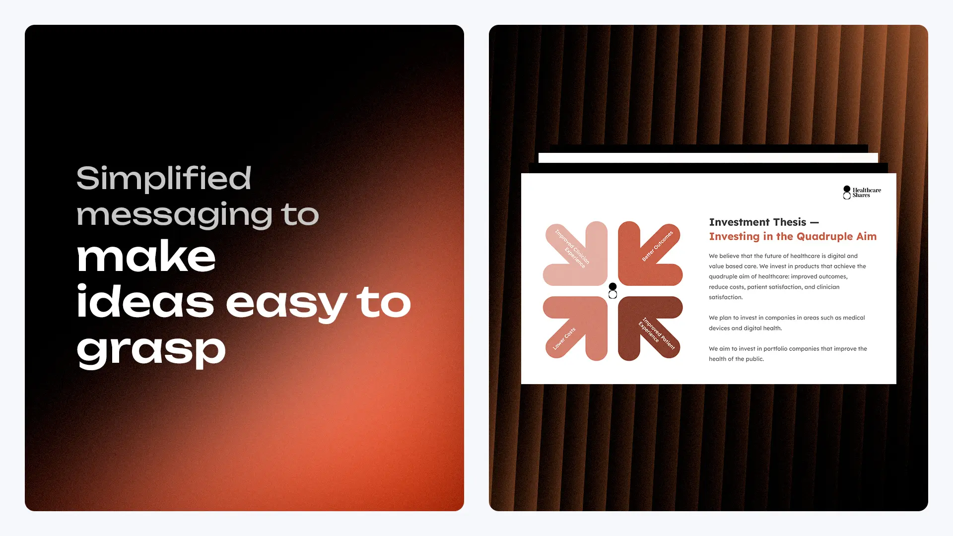 We partnered with the team to transform their vision into a structured investor deck that clearly explains their investment thesis, highlights gaps in traditional healthcare venture capital, and presents a compelling fund opportunity.
